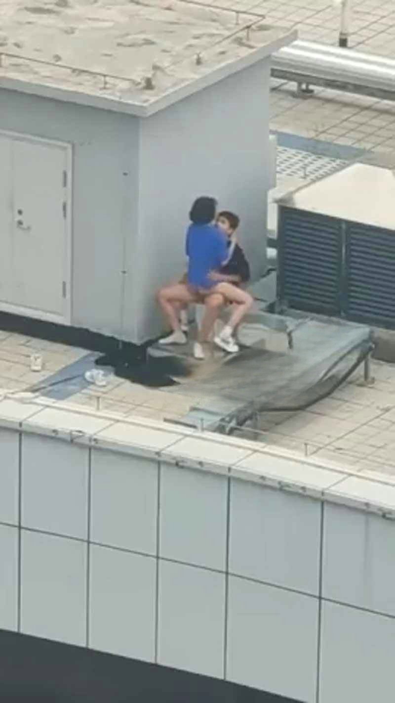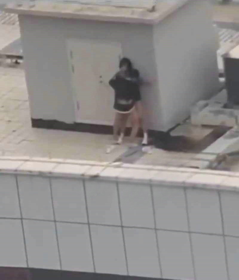 小情侣寻刺激跑天台啪啪 热心肠大哥帮忙记录并附上激情解说