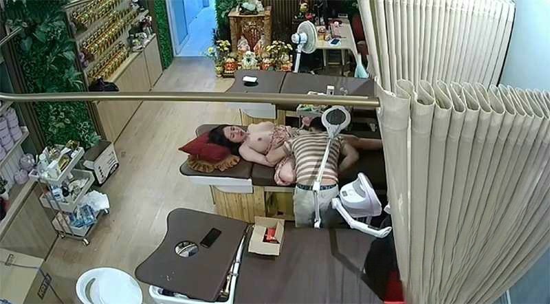黑客破解美容院摄像头偷拍 富姐去美容院 spa 被男老板按住亲自打针